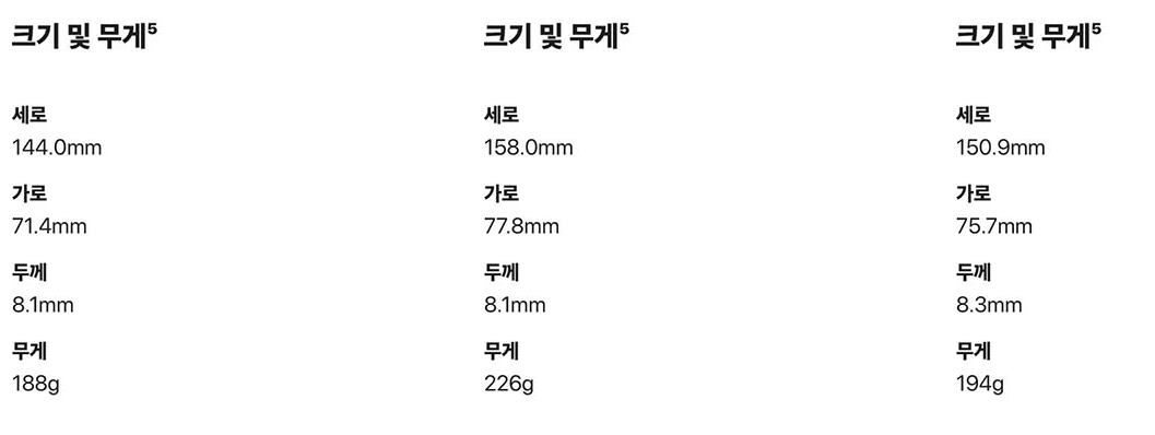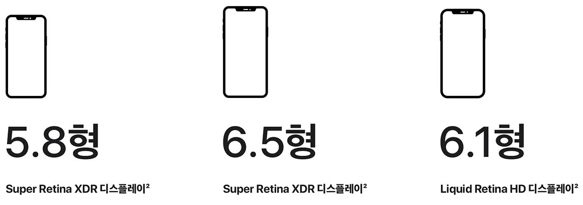 다음으로 중요하게 생각하실만한 액정사이즈는 왼쪽부터